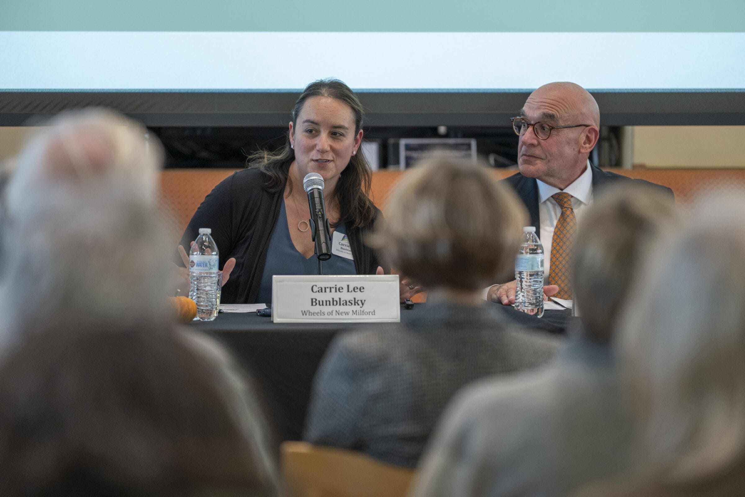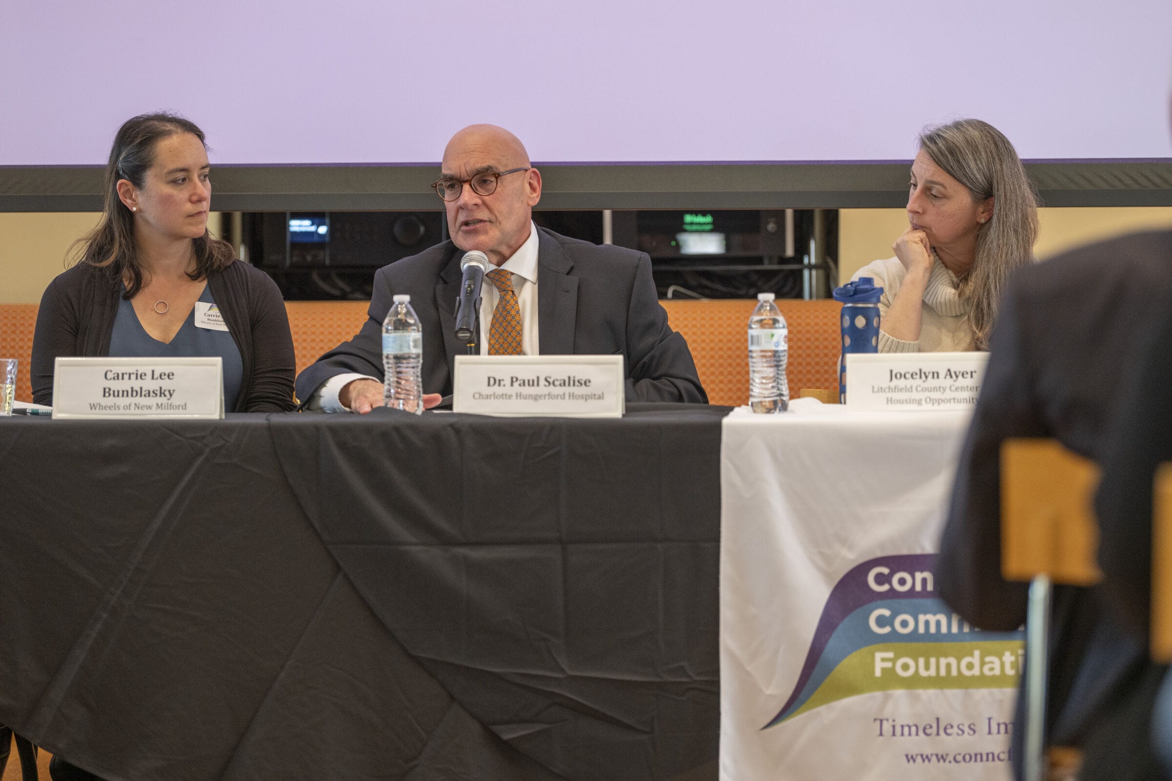 On October 28, we at the Foundation were inspired and gratified by the overwhelming turnout and the wonderful community response at our forum titled “This Is The Moment: Shaping the Future Through Responsive Change and Action.” We are thankful to the expert speakers who joined us to share insights from the work they do with nonprofits that serve the Litchfield Hills region. Hosted by Foundation President and CEO Kathy Taylor, our panel included: Berta Andrulis Mette, Executive Director of the Litchfield Community Center; Jocelyn Ayer, Director of the Litchfield County Center for Housing Opportunity; Carrie Lee Bunblasky, Executive Director of Wheels of New Milford; Howard Rosenfeld, Founder of The Farmer’s Table; and Dr. Paul Scalise of Charlotte Hungerford Hospital.